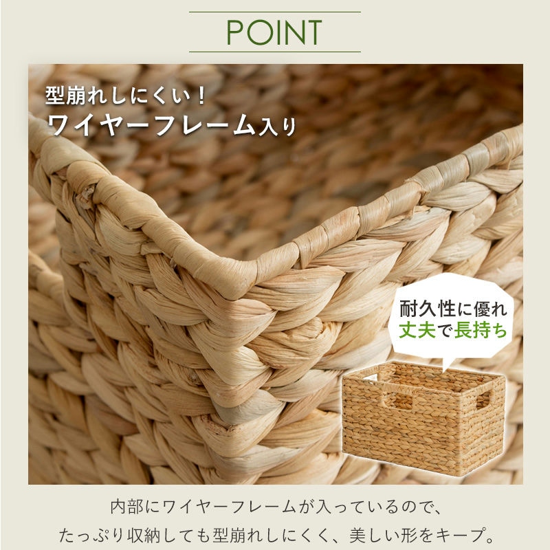 天然素材バスケット ウォーターヒヤシンス 【 スクエア3個セット(ふた無し) S/M/L 】 IW-56
