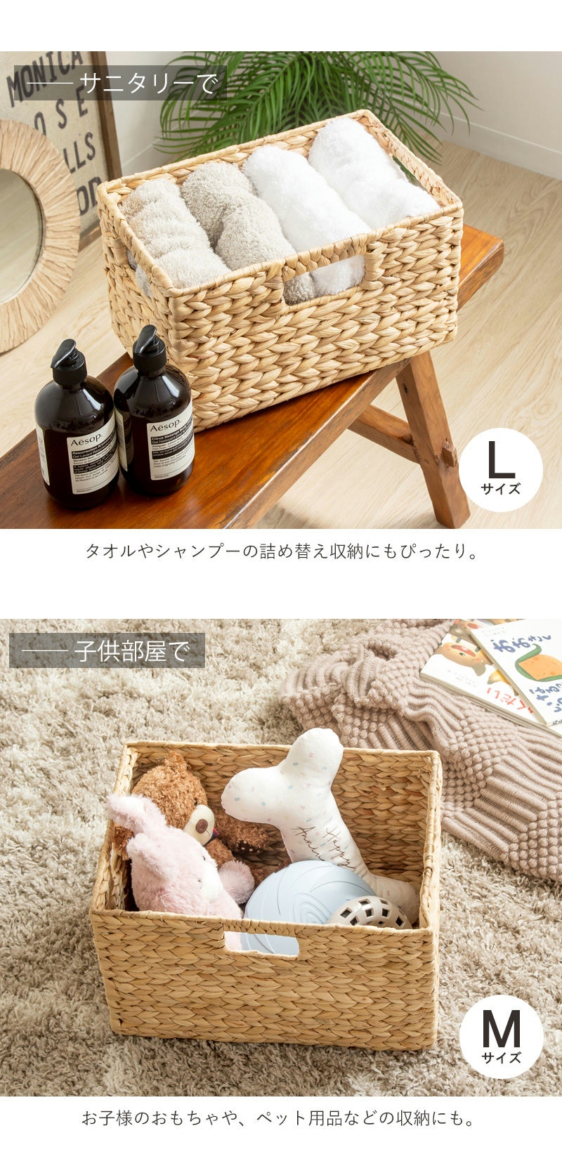 ナチュラルな素材感が暮らしに馴染む ウォーターヒヤシンスバスケット。
