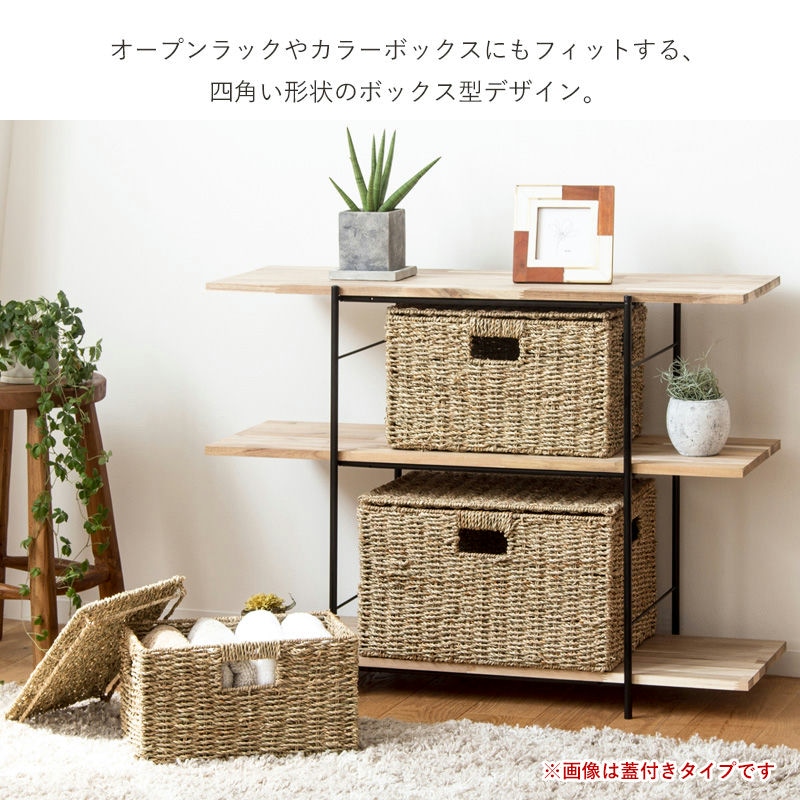 天然素材バスケット シーグラス 【 スクエア3個セット(ふた無し) S/M/L 】 IW-78