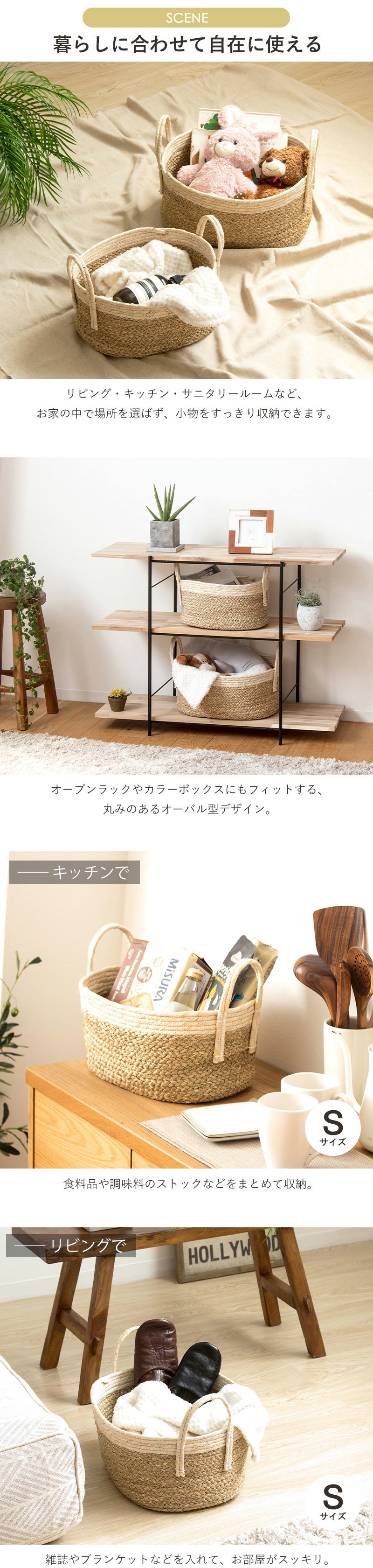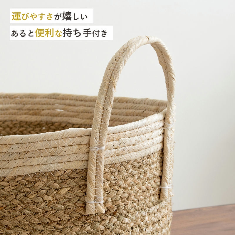 天然素材バスケット シーグラス 【 オーバル2個セット(持ち手付き) S/L 】 IW-23